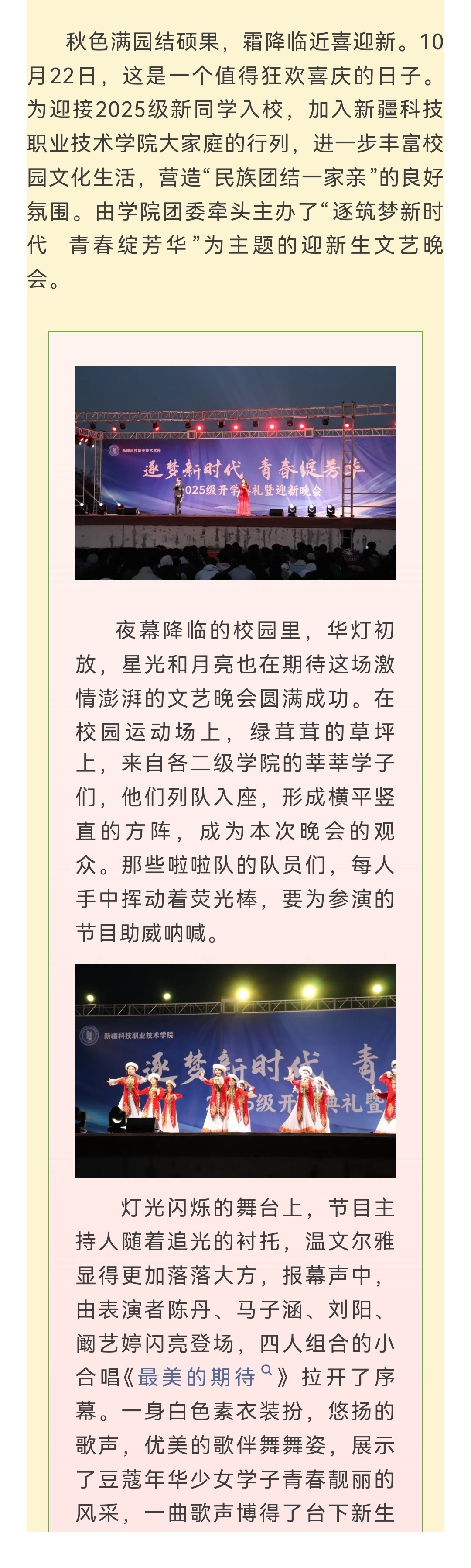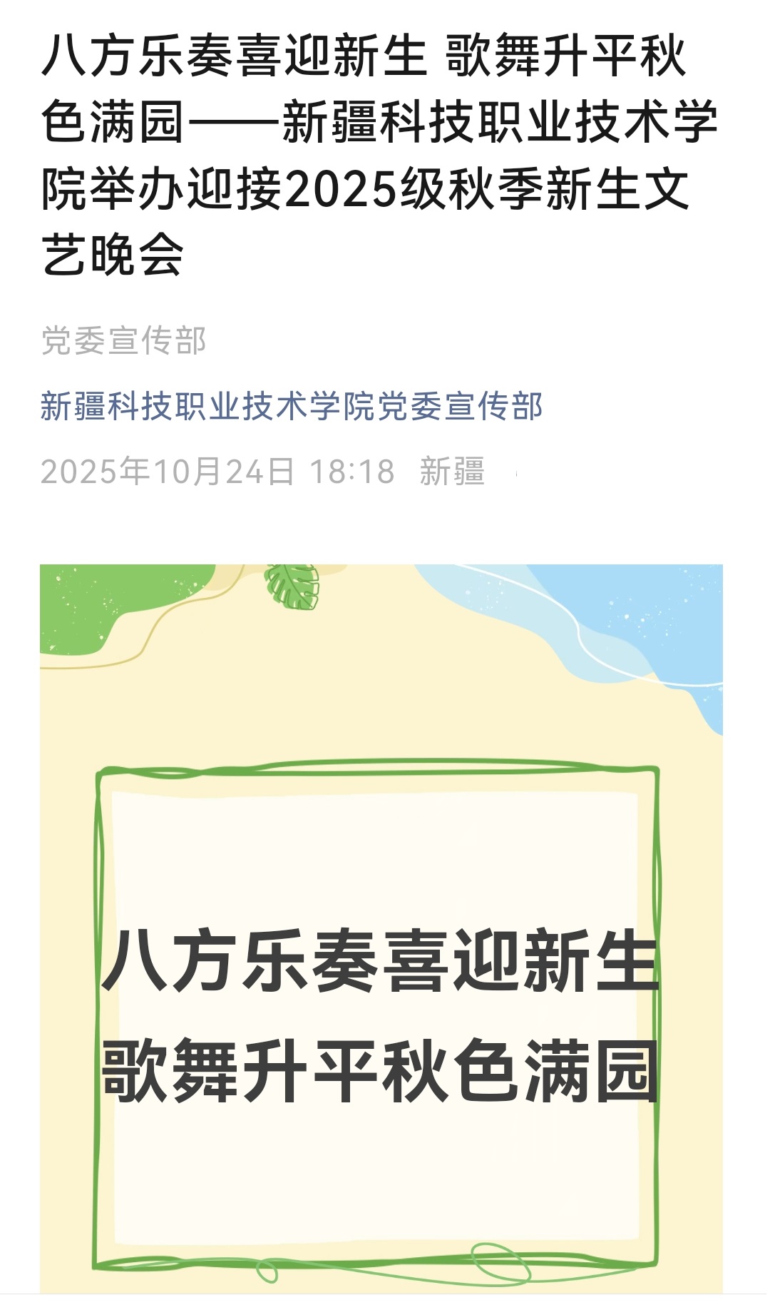 八方乐奏喜迎新生 歌舞升平秋色满园——新疆科技职业技术学院举办迎接2025级秋季新生文艺晚会