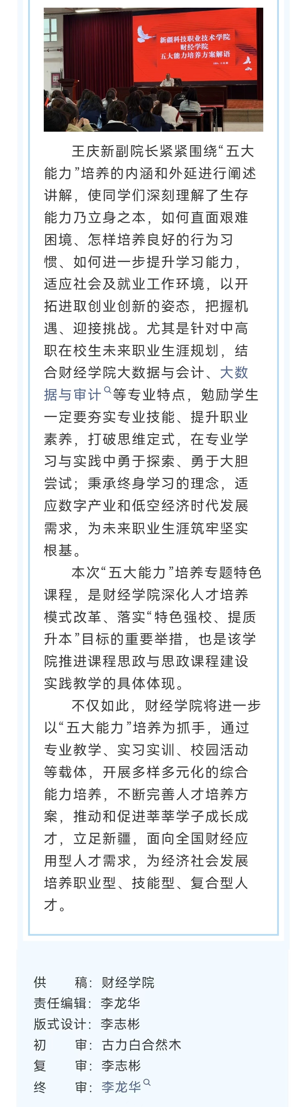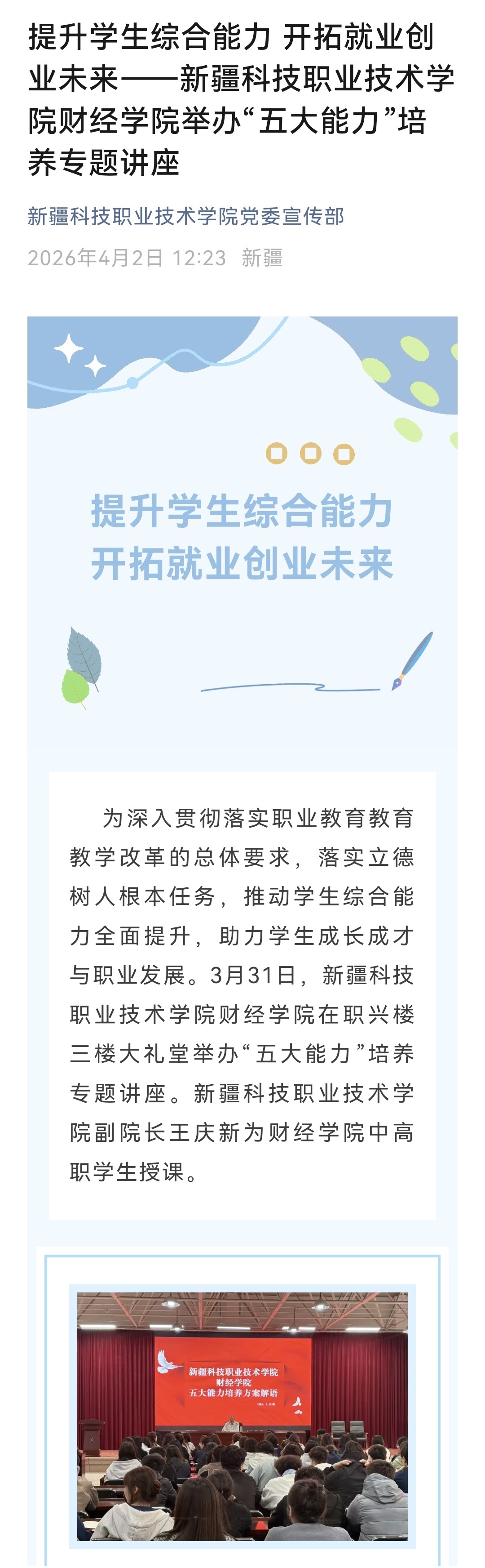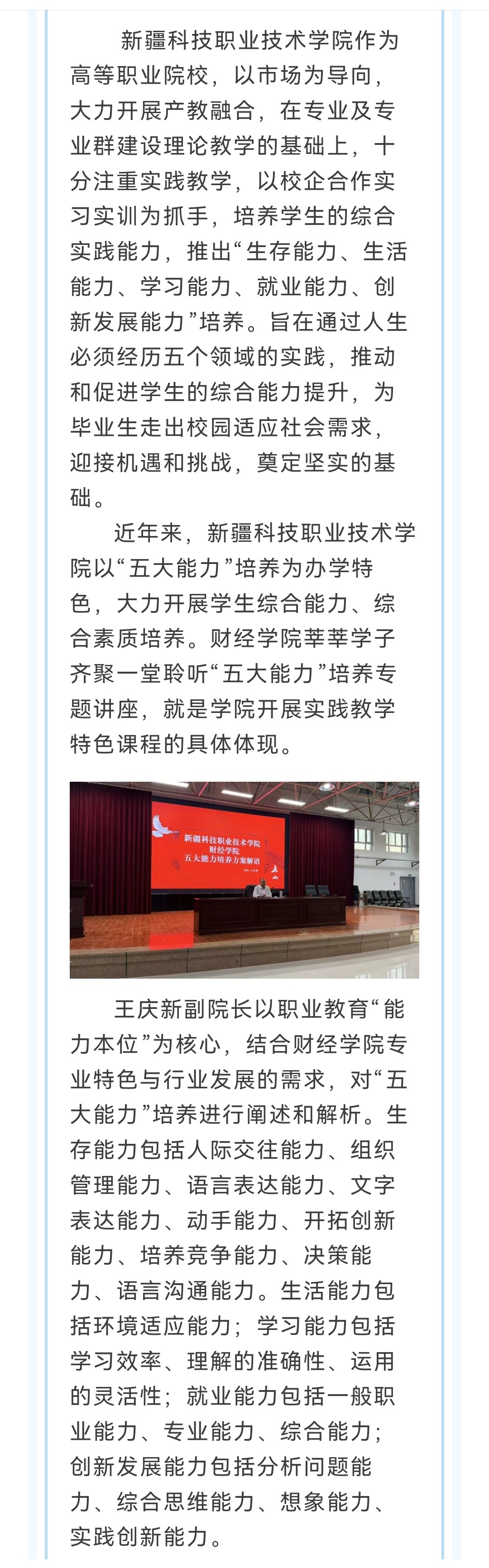 提升学生综合能力 开拓就业创业未来——新疆科技职业技术学院财经学院举办“五大能力”培养专题讲座